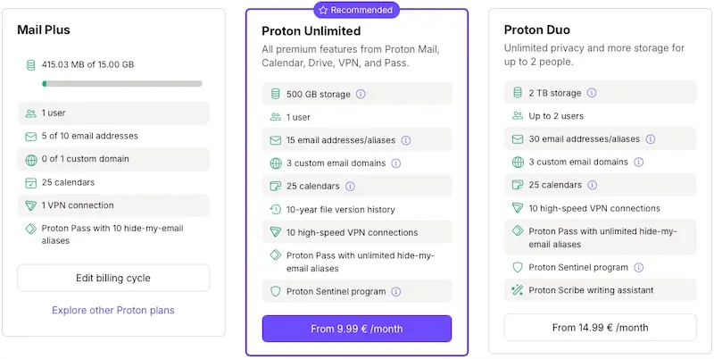 So, I clicked ‘Explore other Proton plans’. This time, the page provided information about the Lumo Plus plan: