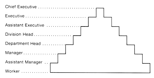 And so the pyramid grows! Messages initiated at the bottom of such a many-layered organization are unlikely to reach the top without distortion. The pyramidal hierarchy contributes a few satisfied managers and a multitude of dissatisfied staff. Current thinking is that empowered workers can lead to flatter and more efficient organisations.