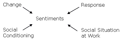 Because of the unexpected results of the initial studies, the Hawthorne experiments were extended for an additional four years. The researchers found that there were influences affecting efficiency and productivity much more strongly than working conditions — namely: group social structures, group norms and group pressures. Even when wages were lowered, for example, productivity would increase when group acceptance was at stake. We can illustrate the results of the Hawthorne studies as follows: