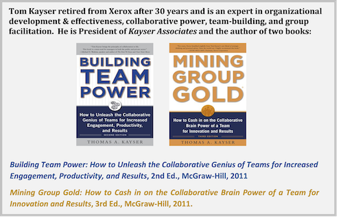 We would develop ideas in sub-teams, share them with the whole group, and then debate merits of the ideas and build a refined list. Over several sessions, each refined list was further added to, subtracted from, continually modified and polished.