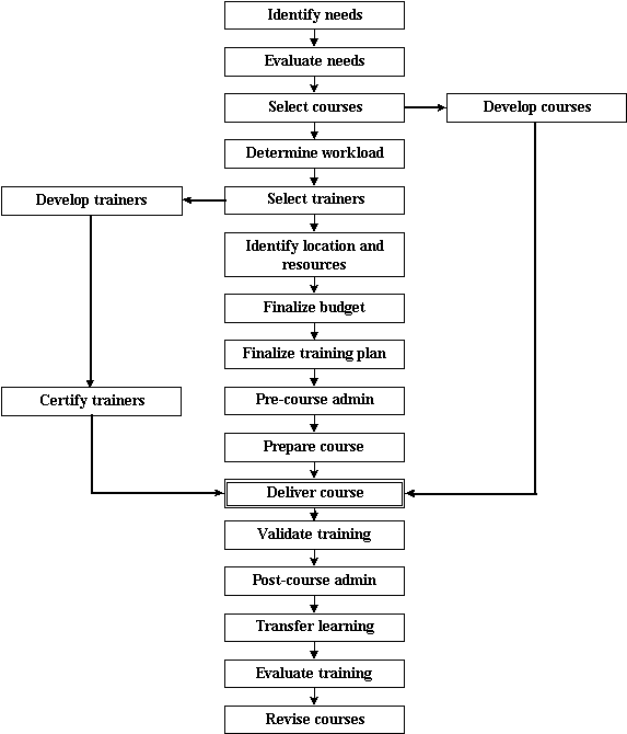 One of the primary questions would be whether the organization has a training process. Figure 3, adapted from Managing the Training Process, gives an example of such a process.